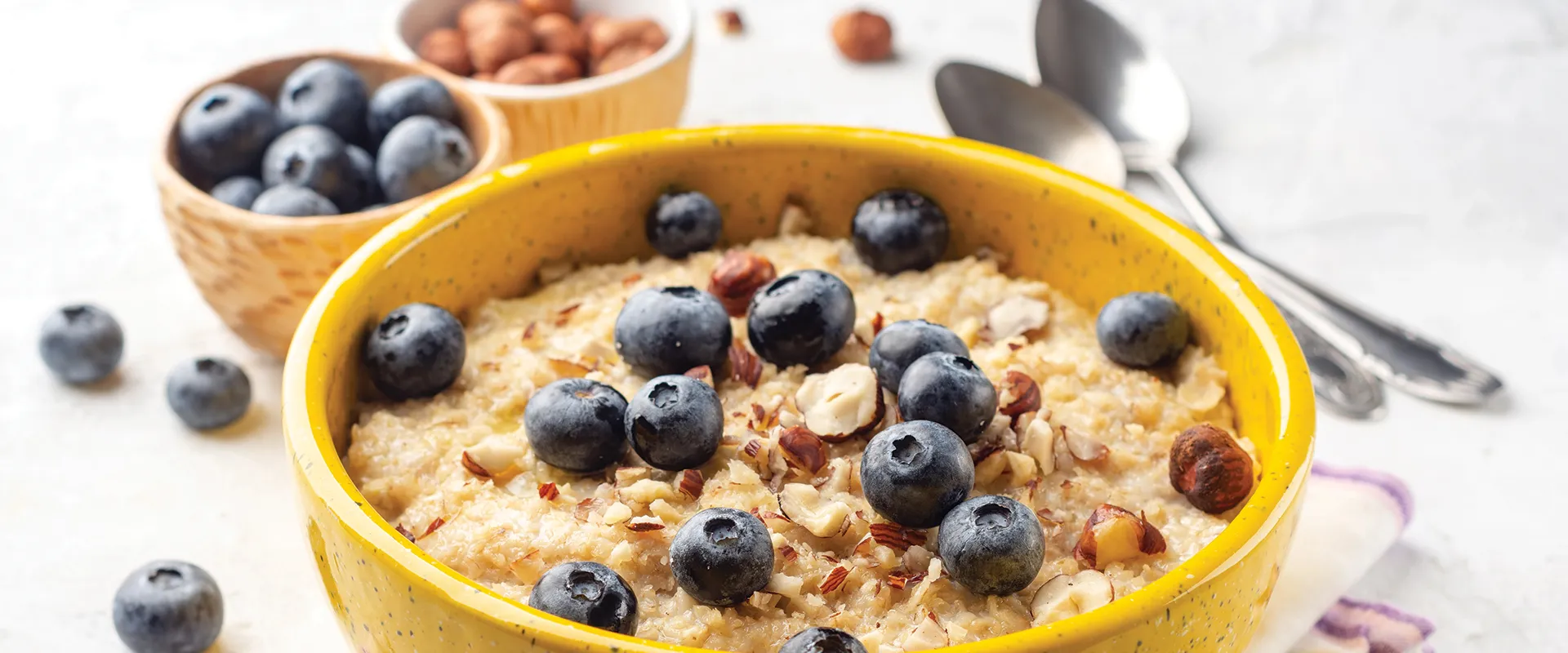 - The following morning, build your bowl or cups with the overnight oats/barley mixture, garnish with a spoon full of dairy yogurt, fresh BC blueberries and fruit preserve, toasted hazelnuts and a heaping spoon of honey.